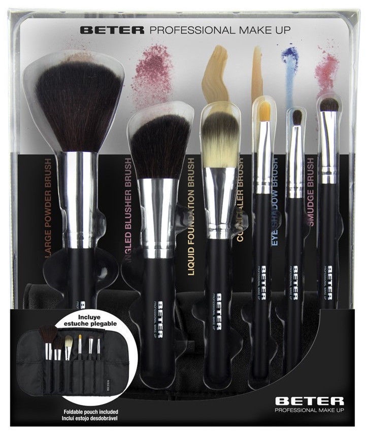 - Rinkinyje Kosmetikos krepšys, Maskavimo šepetėliai, Šepetėliai makiažo pagrindui, Šepetėliai pudrai, Šepetėliai skaistalams, Šepetėliai šešėliams, Šepetėlis
