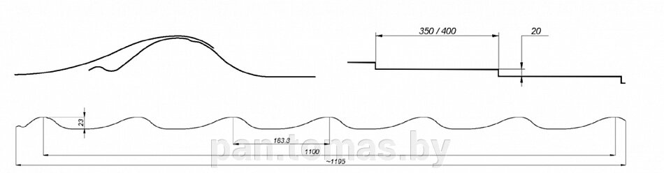 - Ширина полезная 1100 мм