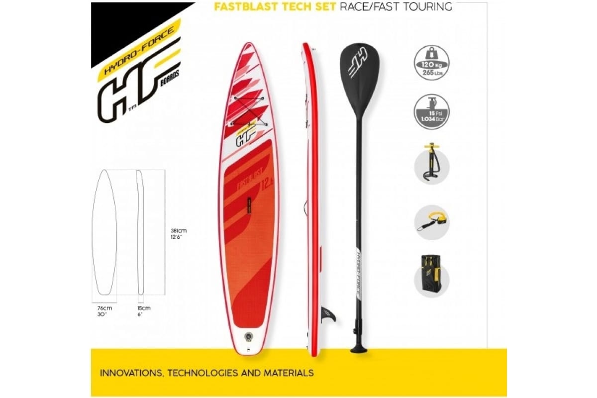 SUP-доска BestWay Fastblast Tech 381x76x15см, до 120кг 65343 BW подходит для быстрых туров средней продолжительности.