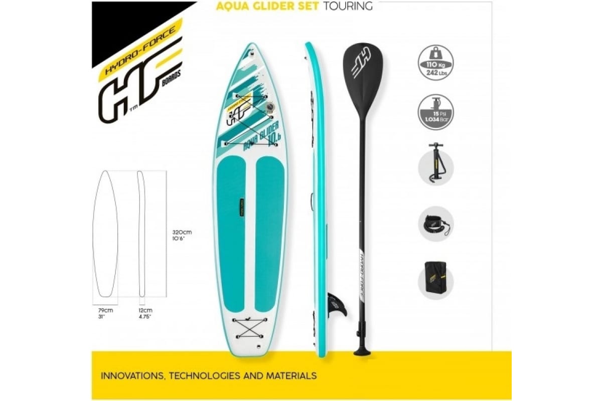 SUP-доска BestWay Aqua Glider 320x79x12см, насос, весло, лиш, ремнабор, сумка, до 110кг 65347 BW