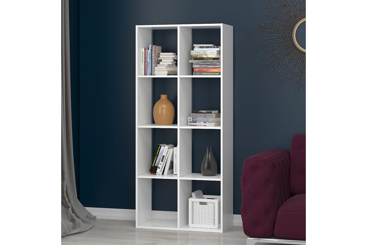 Стеллаж ФЕЛИКС 8-ми секционный белый шагрень ПК-ОБИ-СЖ164Х73-В1-1068 станет украшением интерьера дома или квартиры. Вместительная конструкция деревянного стеллажа может использоваться как книжный шкаф или полка для игрушек, стеллаж для инструментов. Стеллаж деревянный для хранения вещей впишется в любой интерьер детской, гостиной, кухни, спальни, балкона или прихожей. В комплекте идет подробная инструкция по сборке и весь необходимый крепеж.