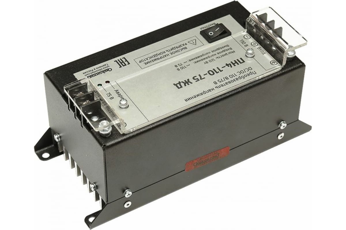 ПН4-110-75 ЖД реализован на принципе высокочастотного преобразования напряжения. С помощью конвертера можно подключить любое электрооборудование, рассчитанное на питание от 75 В к источнику постоянного напряжения 110 В.