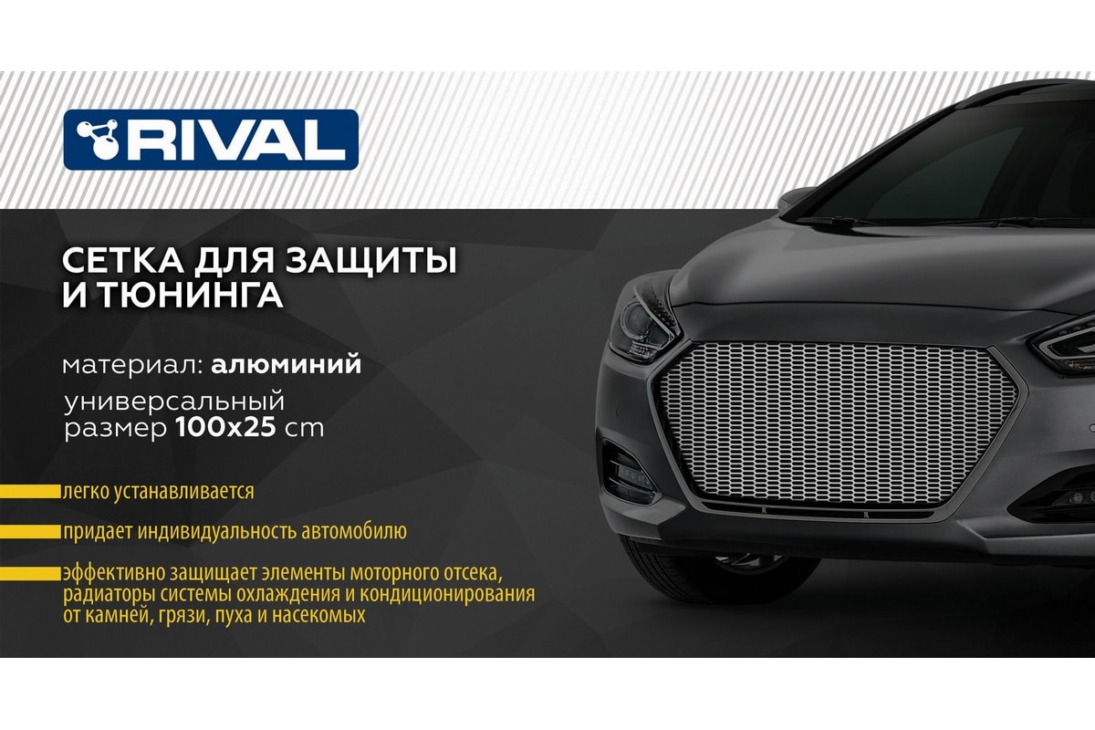 Универсальная сетка для защиты радиатора Rival 1000х250 R16, черная, 1 шт (индивидуальная упаковка) INDIV.ZS.1601.1