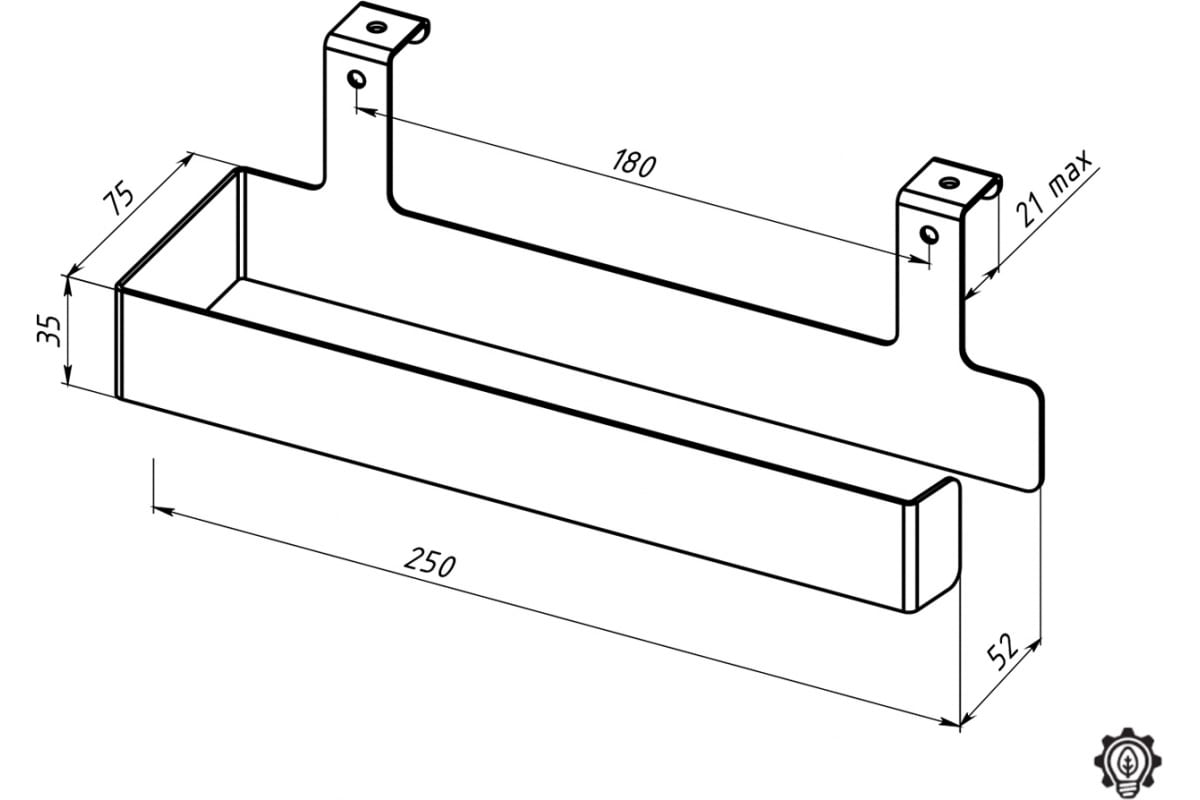 Установка изделия осуществляется без крепежа, но оснащено отверстиями, которые позволяют надежно зафиксировать сбоку или сверху дверцы или ящика.