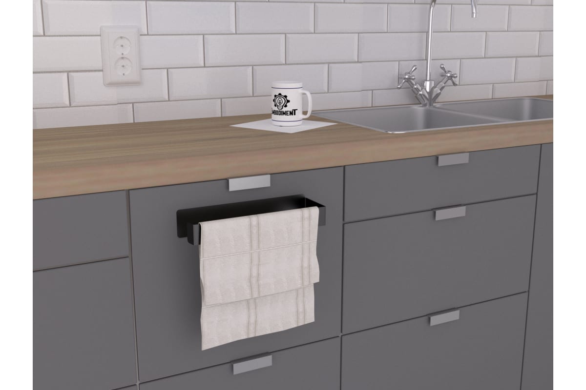 Держатель для бумажных полотенец EMBODIMENT монтаж без сверления, настенный, черный EMB-PTH-W-B - не просто функциональное изделие, на которое удобно разместить бумажный рулон, кухонное полотенце, пакеты для хранения продуктов, это еще и превосходный элемент декора, помогающий организовать хранение на кухне или ванной комнате.