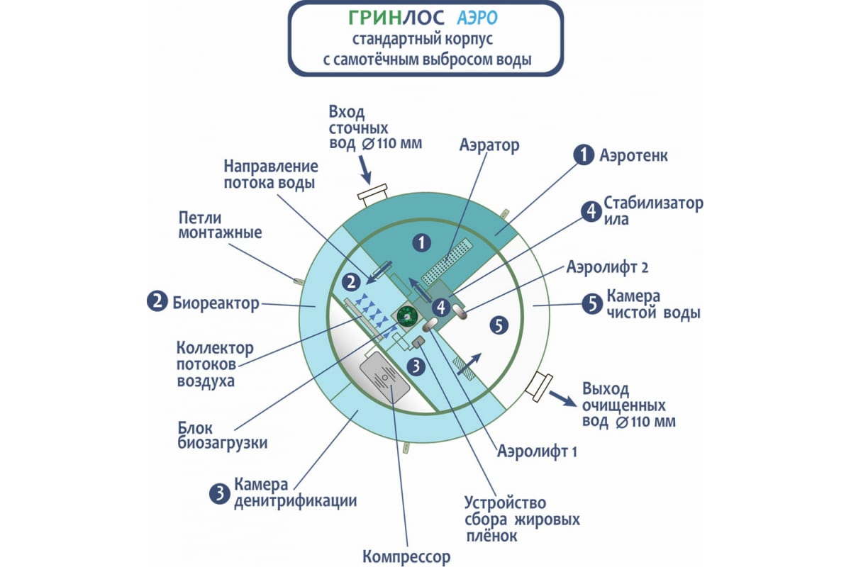 Септик Гринлос Аэро 10 Миди GL02M10ST11 - это станция биологической очистки сточных вод аэрационного типа.