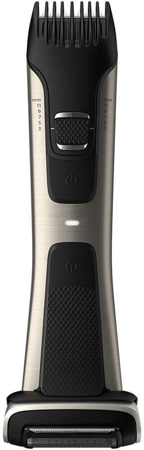 Универсальный триммер для бороды и усов/для деликатных зон/для тела. Длина стрижки: 3–11 мм. Питание от аккумулятора, автономная работа: 1 час 20 минут. Водонепроницаемый корпус, не требует смазки.
