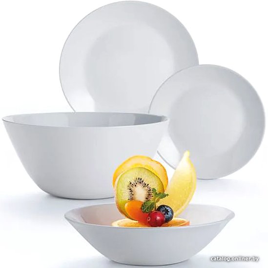 - Состав набора Тарелка десертная 6 шт. (18 см).Тарелка обеденная 6 шт. (25 см).Тарелка суповая 6 шт. (20 см).Салатник 2 шт. (24 см).