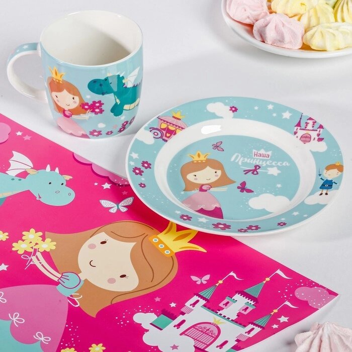 Набор детской посуды «Принцесса»кружка 250 мл, тарелка Ø 17.5 см, салфетка 35 22 см