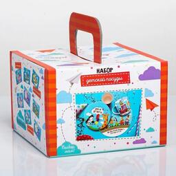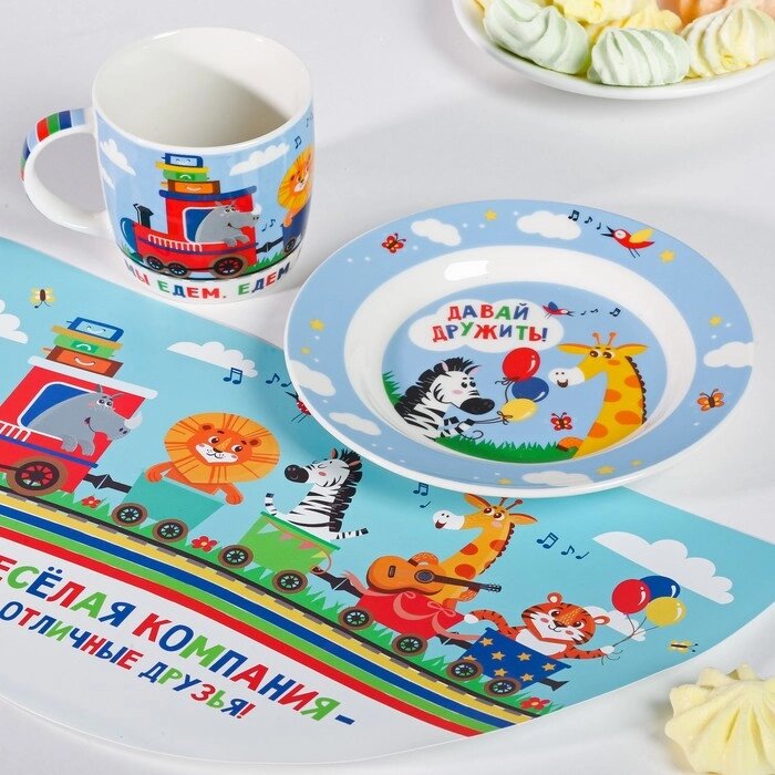 Набор детской посуды «Весёлый поезд», кружка 250 мл, тарелка 17,5 см, салфетка 22 х 35 см