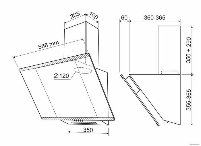 - Диаметр воздуховода 120 мм