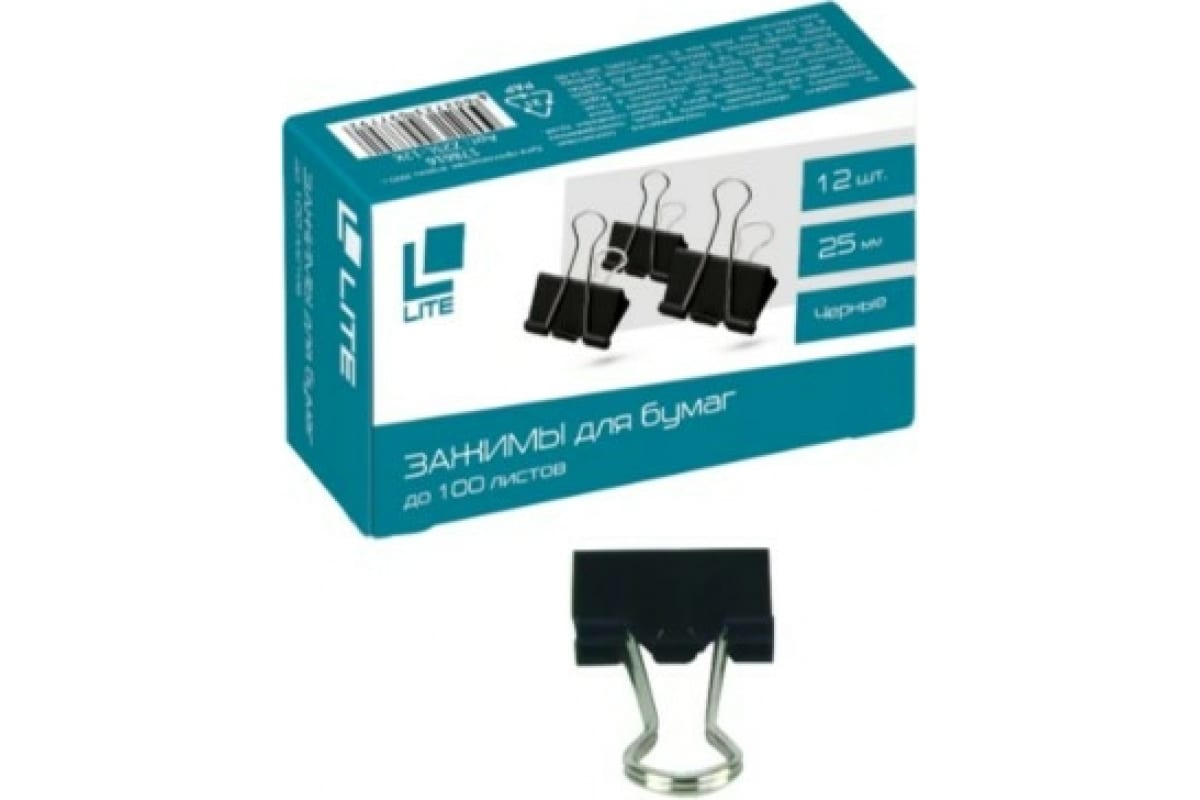 Зажим LITE черный металл 25 мм Z25L-12K способен соединить несколько листов бумаги. Сжатие происходит без повреждения волокна.