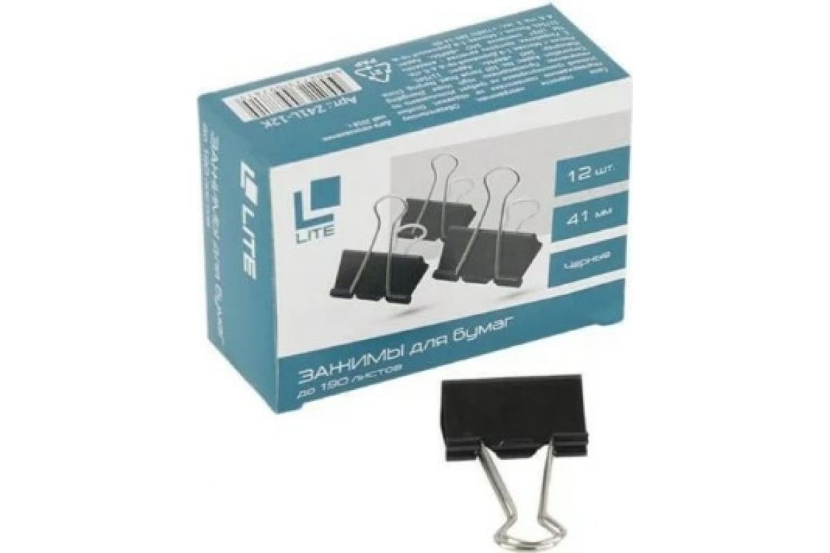 Зажим LITE черный металл 41 мм Z41L-12K способен соединить несколько листов бумаги. Сжатие происходит без повреждения волокна.