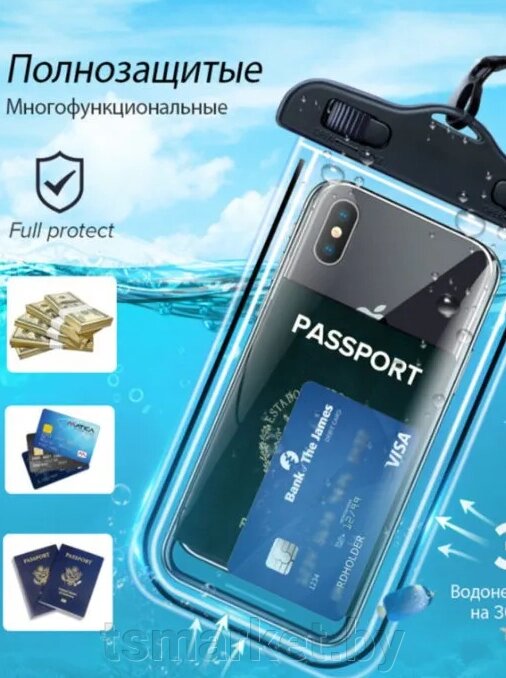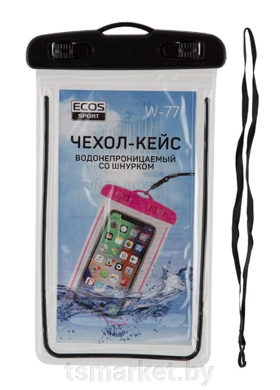 Водонепроницаемый чехол-для телефона, документов со шнурком ECOS 6 дюймов (черный)
