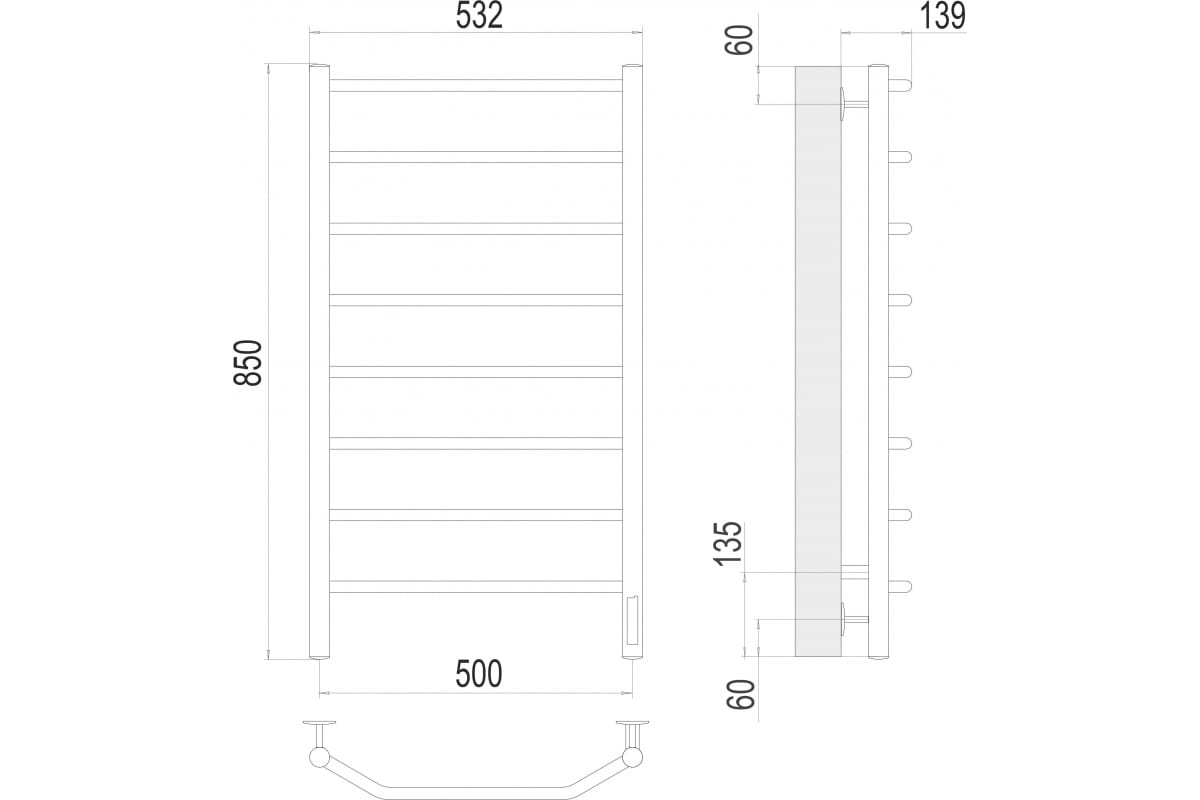Полотенцесушитель Terminus Виктория quick touch П8 500x850 4670078531216