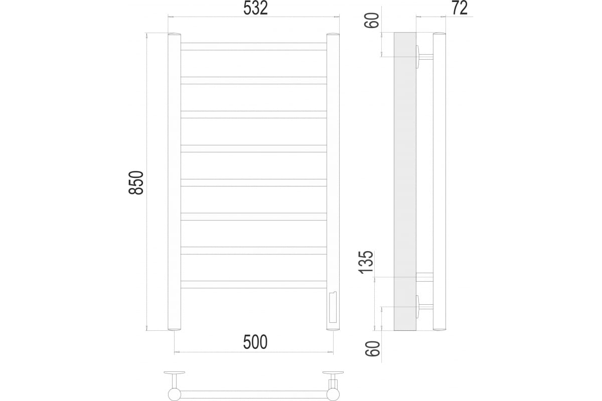 Полотенцесушитель Terminus Аврора quick touch П8 500x850 4670078531179