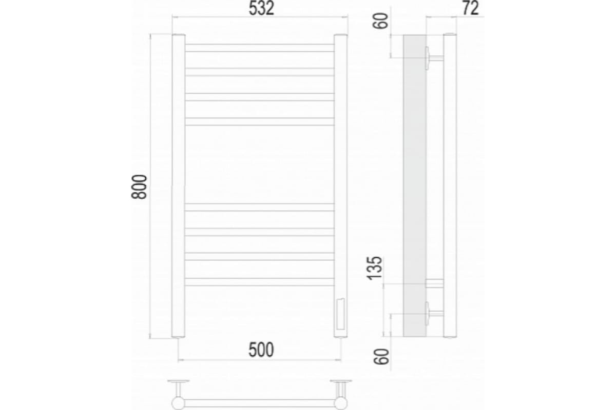 Полотенцесушитель Terminus КС Аврора П8 500x800 электро КС 9003 матовый 4670078527486