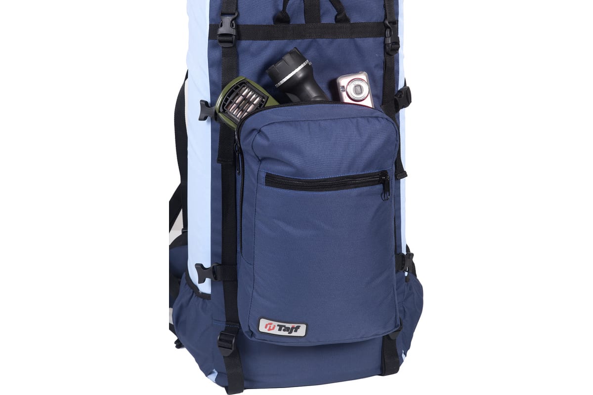 Продуманы и специально сконструированы карманы: боковые – для термоса, очков, средств гигиены, фронтальный – для посуды и запасов еды, фонарика, верхний в верхнем клапане – под аптечку и внутренний на молнии – под документы.