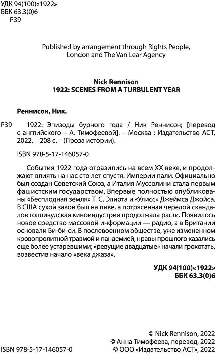 Книга АСТ 1922: Эпизоды бурного года (Реннисон Н.)