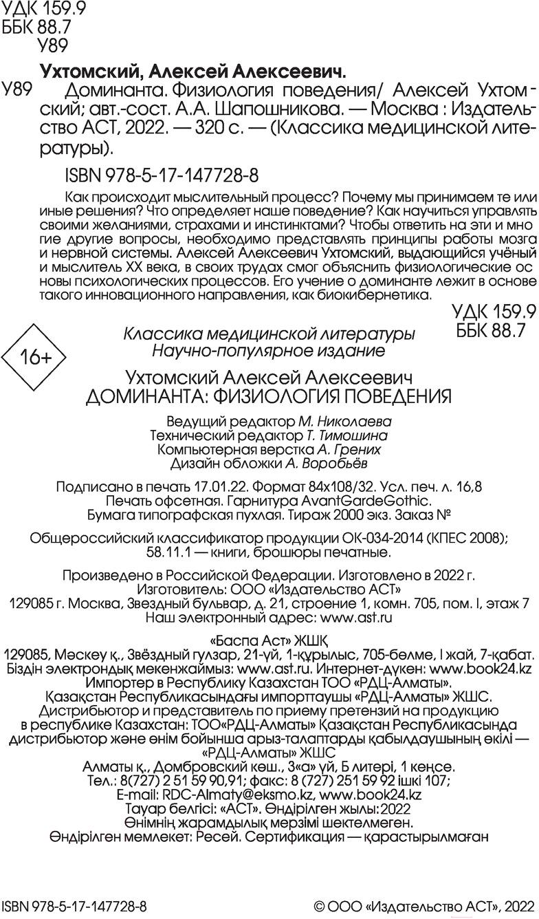 Книга АСТ Доминанта (Ухтомский А.А.)