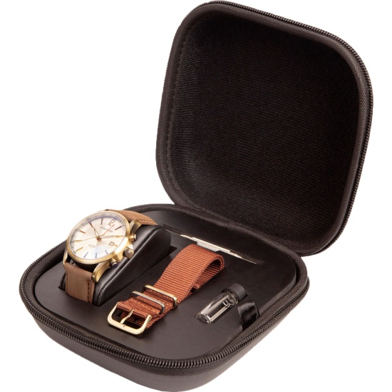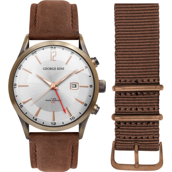 Прекрасные часы на базе надежного японского механизма, которые будут уместны в любом мужском образе. Второй часовой пояс отображается отдельной стрелкой на основном циферблате. 12-ти и 24-х часовой формат времени. Круглый корпус изготовлен из нержавеющей сатинированной стали. Циферблат выполнен по технологии Sunray (солнечные лучи), в зоне меток - рельефный декоративный узор. Метки в виде штрихов, 12-ти часовая метка в виде арабской цифры. Стрелки в стиле Dauphine с люминесцентным покрытием, которое светится в темноте после непродолжительной зарядки на свету. Окошко даты находится в положении 3 часа. Рифленая заводная головка. Удобный ремешок из нубука с классической застежкой. В комплекте сменный NATO-ремешок.
