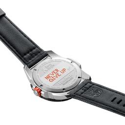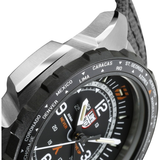 С этими часами невозможно потеряться во времени, в каком бы городе вы не находились. Идеальный вариант для тех, кто часто ездит в командировки. Лимитированная серия - 3760 экземпляров. Новая серия часов создана при сотрудничестве с Bear Grylls (Беар Гриллс), который является известным путешественником, телеведущим и специалистом по выживанию в экстремальных условиях. Циферблат часов украшен девизом Беара «Never Give Up» (Никогда не сдавайся), который идеально сочетается с девизом компании Luminox «Каждая секунда на счету». 12-ти и 24-х часовой формат времени. Второй часовой пояс в 24-х часовом формате времени, отображается центральной стрелкой с оранжевым наконечником. Окошко даты. Круглый стальной корпус с вращающимся безелем из усиленного карбона CARBONOX™. Специальная технология LLT обеспечивает непревзойденную ночную видимость на протяжении 25 лет. Завинчивающаяся заводная головка с защитой и оранжевым прорезиненным кольцом для лучшего сцепления. Оранжевый цвет является одним из самых заметных цветов для подводных работ. Завинчивающаяся задняя крышка из стали украшена надписью «Never Give Up» и выгравированным автографом Беара Гриллса. Тканевый ремешок на кожаной основе с классической застежкой.