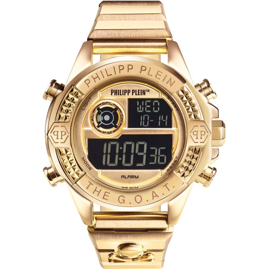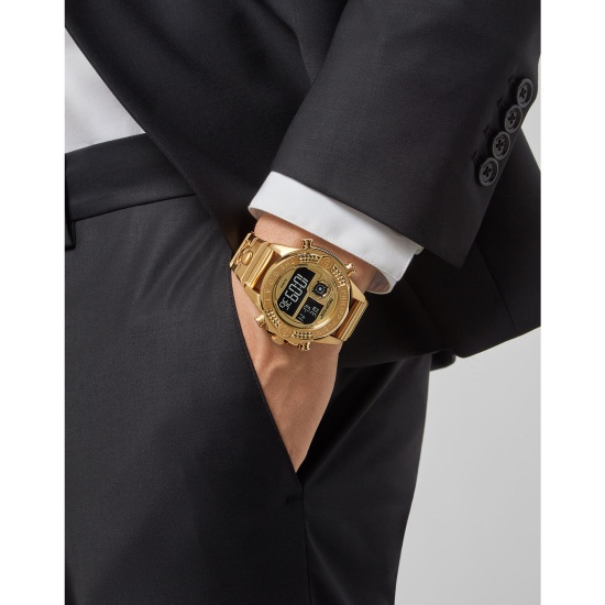 Электронные часы. Подсветка. Секундомер. Будильник. Дата. Золотистый дисплей. Круглый корпус выполнен из нержавеющей стали с золотистым IP покрытием. Диаметр корпуса составляет 44 мм, толщина 16 мм. Заводная головка с защитой. Стальной браслет с покрытием, раскладывающаяся застежка. Прочное минеральное стекло устойчивое к мелким механическим повреждениям.
