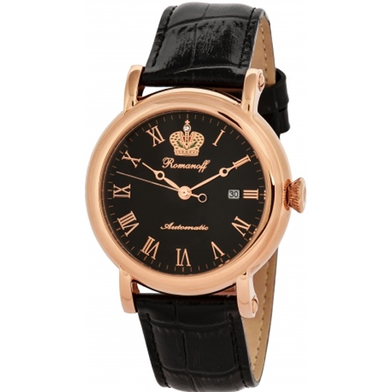Механизм: механический с автоподзаводом MiyotaКоличество рубиновых камней: 21Функции: центральные часовая и минутная стрелки, центральная секундная стрелка, календарь чисел месяцевПротивоударное устройство: естьЦиферблат: черный, фианит в короне, римские цифрыКорпус: гипоаллергенная нержавеющая сталь, 5 мкр. позолота, стеклянная обратная крышкаДиаметр корпуса: 44 ммТолщина корпуса: 11 ммСтекло: закаленное швейцарское минеральное, высокоустойчивое к царапинам и другим внешним воздействиямРемень: итальянская натуральная кожа, пряжка butterfly, выделка «Крокодил», цвет - черныйШирина ремня: 22 ммВлагозащита: 5 АТМ