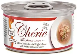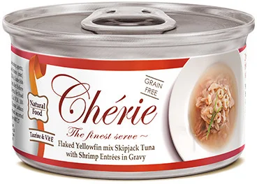 Консервы Pettric Cherie Signature Gravy смесь хлопьев желтоперого и полосатого тунца с креветками в подливе для кошек
