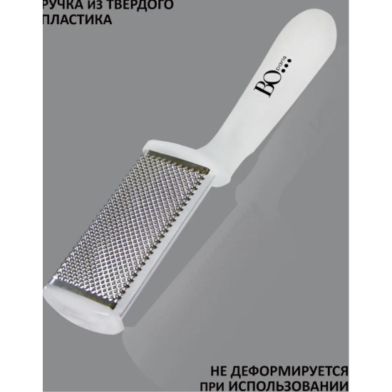 Терка для педикюра Bo Paris, 1 штМеталлическая терка для педикюра эффективно удаляет ороговевшую кожу. Эргономичная ручка из твердого пластика, не деформируется при использовании.На обратной стороне имеется упор для пальца для более удобного использования.