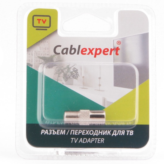 Переходник Cablexpert APL-FTVM-01, F (мама) / TV (папа), блистер F-TV переходник Cablexpert APL-FTVM-01 для ТВ кабеля RG6 (75 Ω) позволяет осуществлять монтаж без пайки контактов
