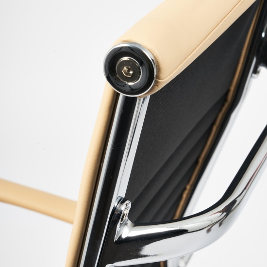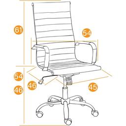 Механизм качания с фиксацией в вертикальном положении. Подлокотники хромированные с накладками из искусственной кожи. Крестовина хромированная. Ролики - прорезиненные. Максимальная нагрузка 120 кг.