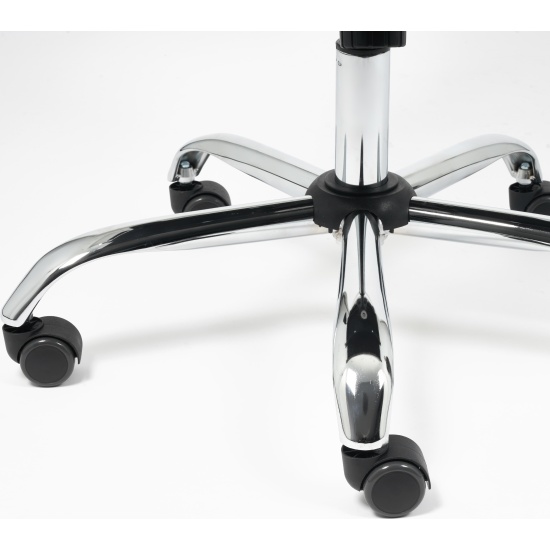 Механизм качания с фиксацией в вертикальном положении. Подлокотники хромированные с накладками из флока. Крестовина хромированная. Ролики - прорезиненные. Максимальная нагрузка 120 кг.