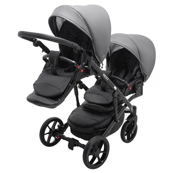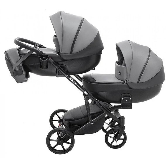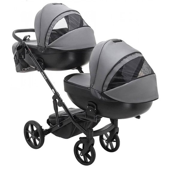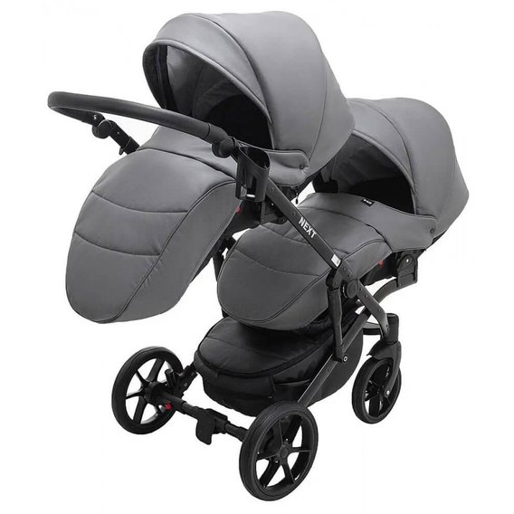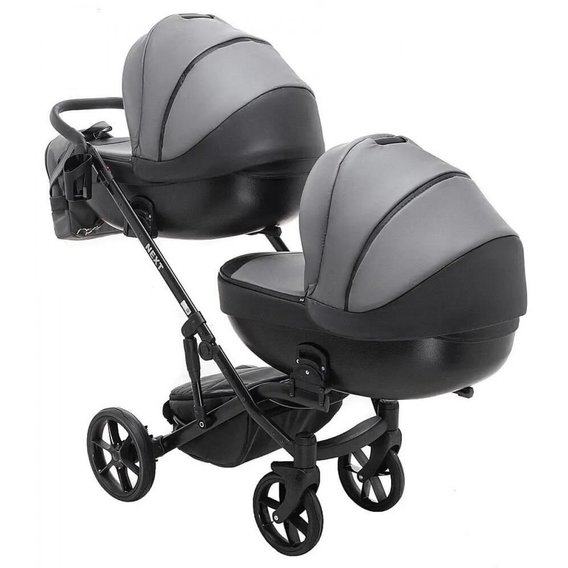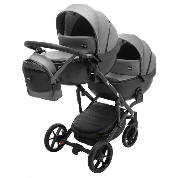 Коляска 2 в 1 для двойни Bair Next DUO Кожа 100% 25 графит