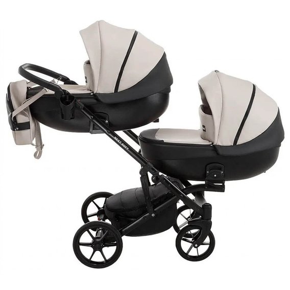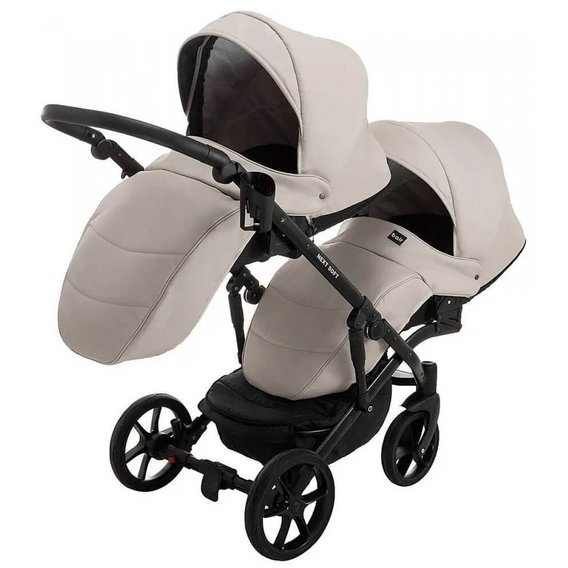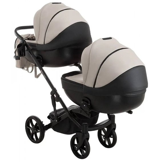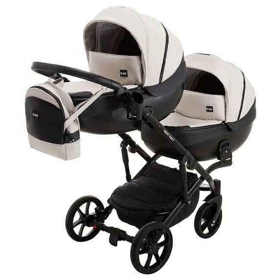 Коляска 2 в 1 для двойни Bair Next DUO Кожа 100% 22 латте