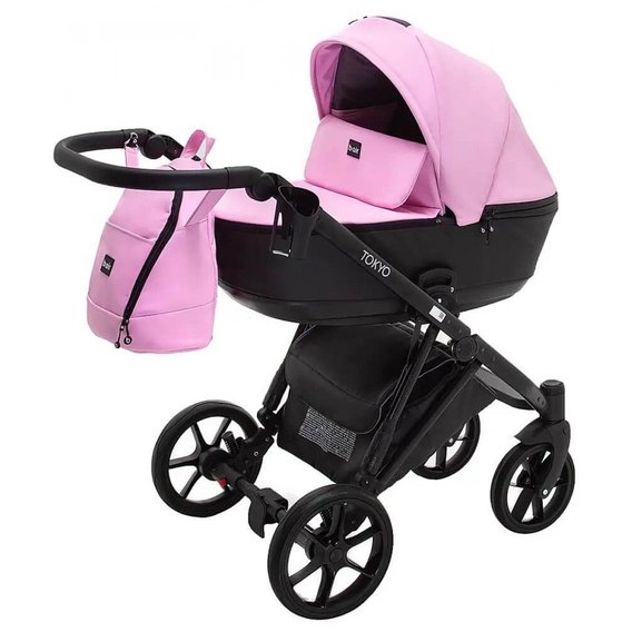 Коляска 2 в 1 Bair Tokyo кожа 100% 73 розовый - черный
