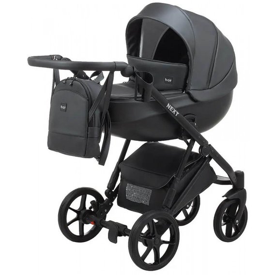 Коляска 2 в 1 Bair Next кожа 100% 17 черный (перламутр)