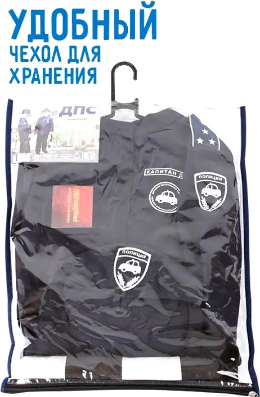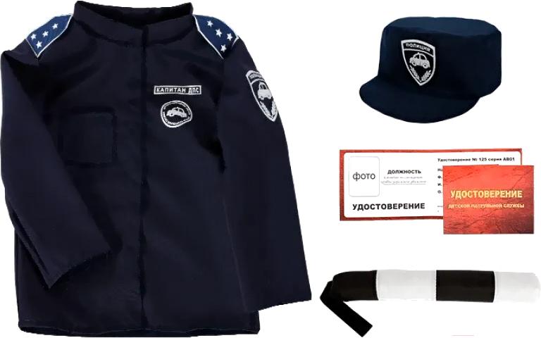 - В наборе шапка (кепка), аксессуар (жезл, удостоверение, чехол, плечики), куртка