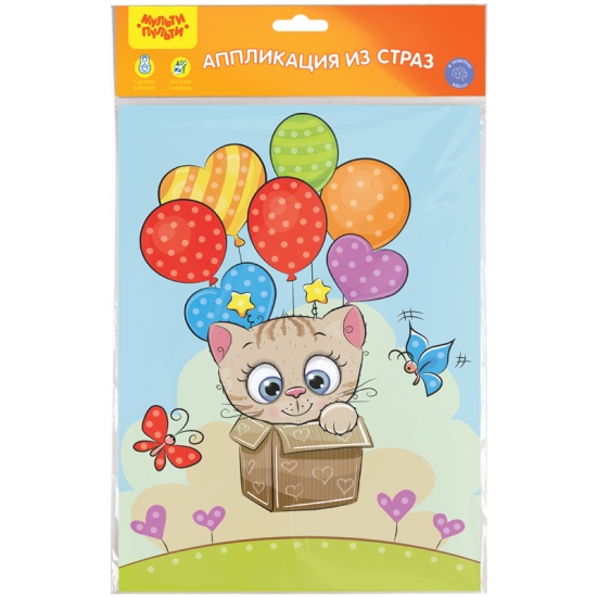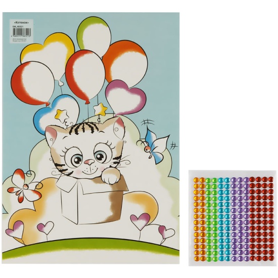 Набор для творчества МУЛЬТИ-ПУЛЬТИ GM_40321 Аппликация из страз. Котенок с раскраской 21х29,5см