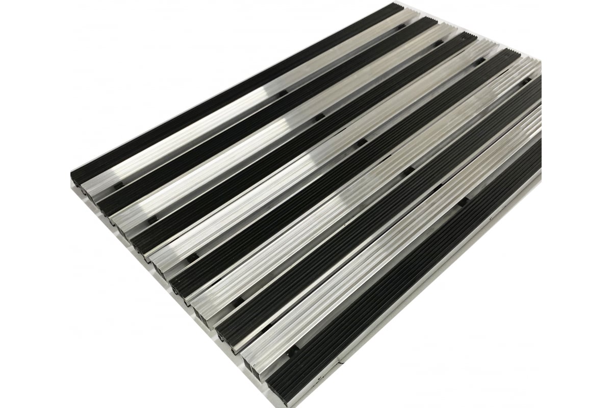 Грязезащитная придверная решетка ООО ПК ЦентрВход Эксперт резина-широкий скребок, 390х590 мм 731EX007 служит для удаления грязи и влаги с обуви людей.Рекомендуется применять для установки в тамбуре или на улице под крышей перед входом в здания.Состоит из резиновых вставок на алюминиевых профилях, которые стянуты тросом из нержавеющей стали в группу, образующую единую систему грязезащитной решётки. Скребок установленный между профилями усиливает эффективность очистки.Решётка работоспособна при любых видах атмосферного воздействия с температурой от -40 до +55 градусов Цельсия.Решетку можно укладывать как на гладкий пол, так и в специальный приямок.С низу решетки есть специальные резиновые ножки, они защищают напольное покрытие от повреждений и снижают уровень шума при эксплуатации решетки.Преимущества:Эффективная очистка обуви.Высокая прочность.Длительный период эксплуатации.Простота установки.