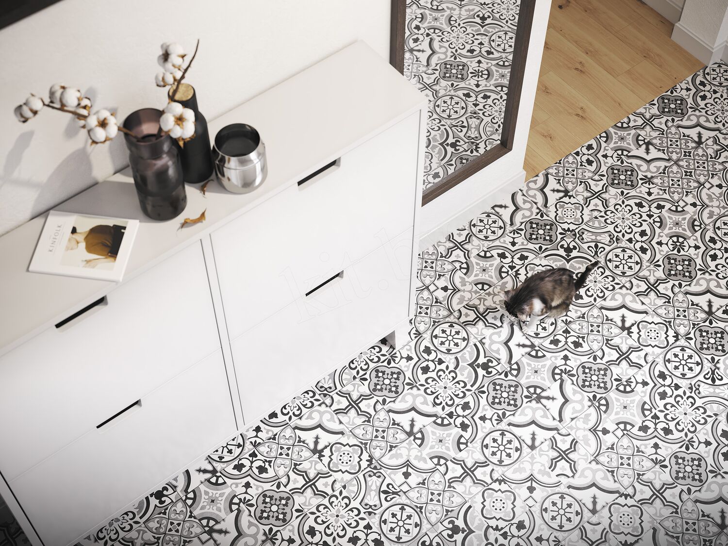 • вставка декоративная: художественно оформленная напольная плитка небольшого размера, которая используется для создания декоративных акцентов в интерьере. Этот элемент применяется для укладки основной плитки со смещением. Декоративная вставка помогает подчеркнуть индивидуальный стиль помещения, скрыть несовершенства планировки;