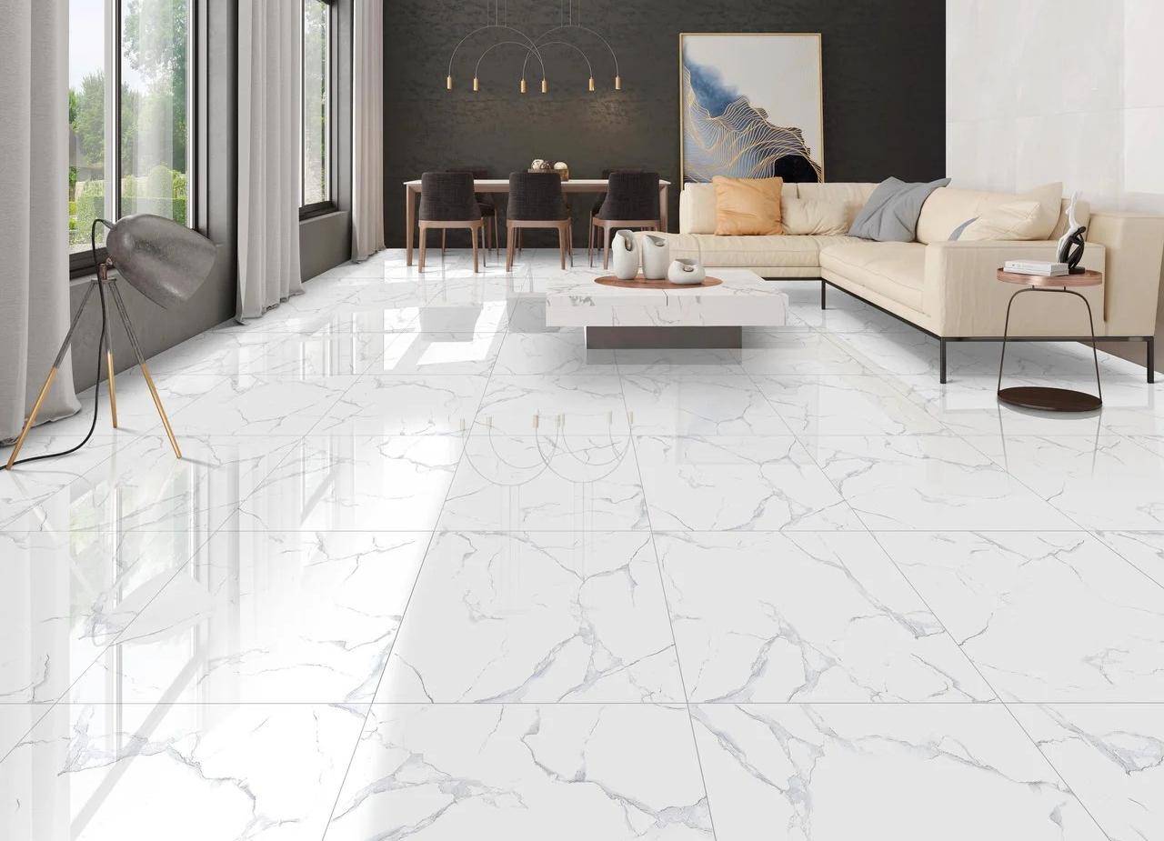 • глянцевая: характеризуется гладкостью и высоким коэффициентом отражения. Глянцевые стены и полы зрительно расширяют пространство за счет своей способности отражать свет. За такой поверхностью достаточно легко ухаживать, так как она практически не впитывает грязь и воду;