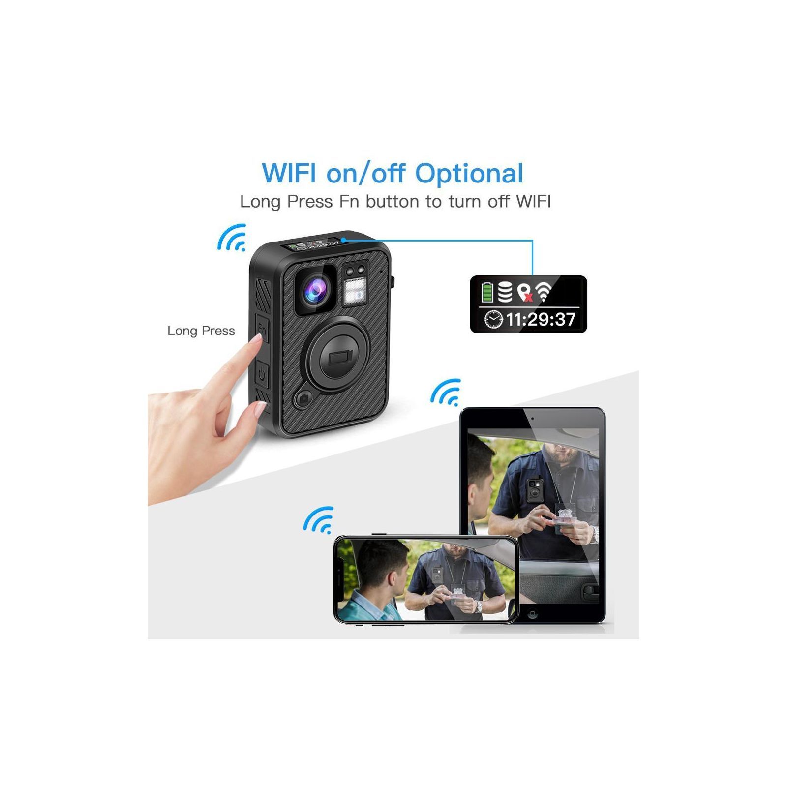 Нагрудний відеореєстратор із вбудованим GPS та WiFi.