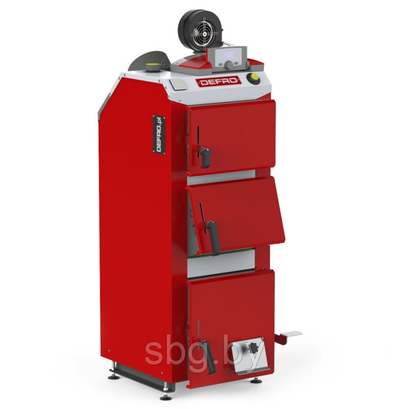 Котел отопления DEFRO имеет эффективный многоступенчатый теплообменник, выполненный из высококачественной жаропрочной стали P265GH польского завода Arcelor Mittal толщиной – 6 мм, который обеспечивает высокий тепловой КПД (до 82%). Между корпусом котла и теплообменником, а также в топочных дверцах, в качестве теплоизолятора применена минеральная каменная вата, благодаря чему человек, обслуживающий данный котел Дефро, максимально защищен от возможности получения ожогов при соприкосновении с его металлическими элементами.