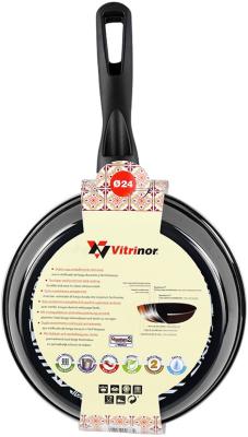 - Прочие особенности и свойства Надёжное двухслойное антипригарное покрытие сковороды обеспечивает долгий срок службы даже при интенсивном использовании. Антипригарное покрытие не содержит PFOA и безопасно для здоровья. Внешнее покрытие из двухслойной стеклоэмали, обожжённой при температуре 820?C, обеспечивает простой уход за сковородой, а яркие цвета посуды Vitrinor украсят интерьер любой кухни. Посуда серии Authentique Crystal подходит для газовых, электрических, керамических и индукционных плит. Корпус сковороды Vitrinor Authentique Crystal 24 изготовлен из стали с ферромагнитными свойствами, что обеспечивает быстрый нагрев и высокую энергоэффективность, особенно при использовании продукции Vitrinor на электрических плитах. Устанавливайте меньшую мощность нагрева на своей плите для достижения лучших результатов и экономии электроэнергии. Эргономичная ручка сковороды из бакелита. Допускается мойка сковороды в посудомоечной машине. Продукция Vitrinor производятся на собственном заводе, расположенном в провинции Кантабрия на севере Испании Вся посуда выпускаемая под маркой Vitrinor соответствует европейскому стандарту UNE-EN 12983-1