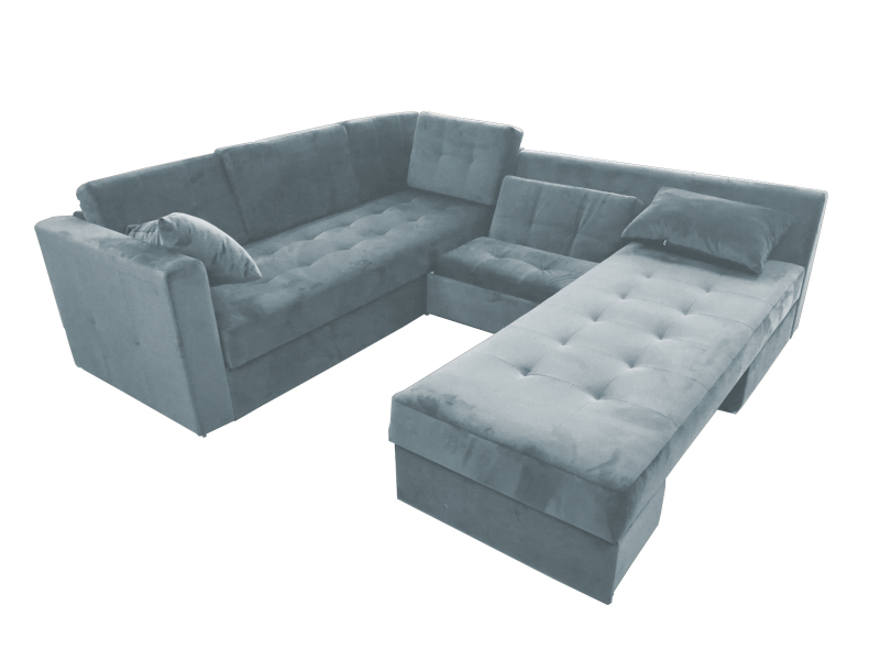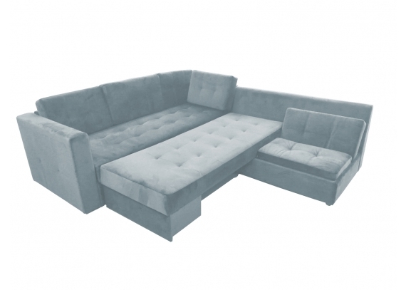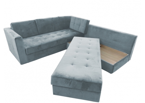 Поворотный механизм Р-90 позволяет трансформировать большой шестиместный диван в двуспальную кровать с креслом и размером спального места 2000*1600 мм, либо в две односпальные кровати с креслом и спальным местом 2000*800мм. А в большой нише для белья с лёгкостью уместятся одеяла и постельные принадлежности.