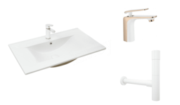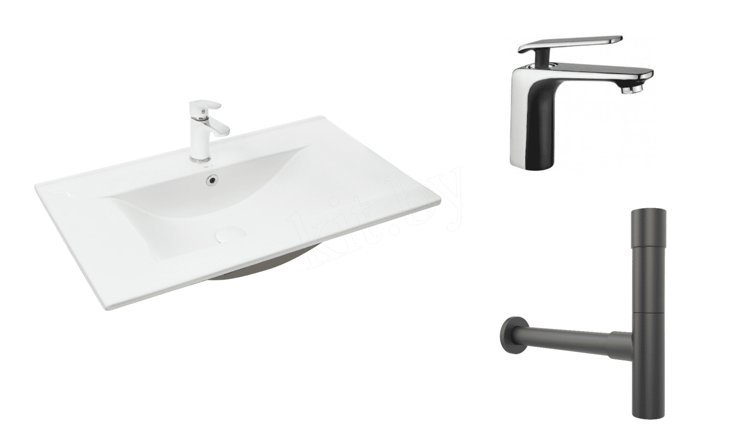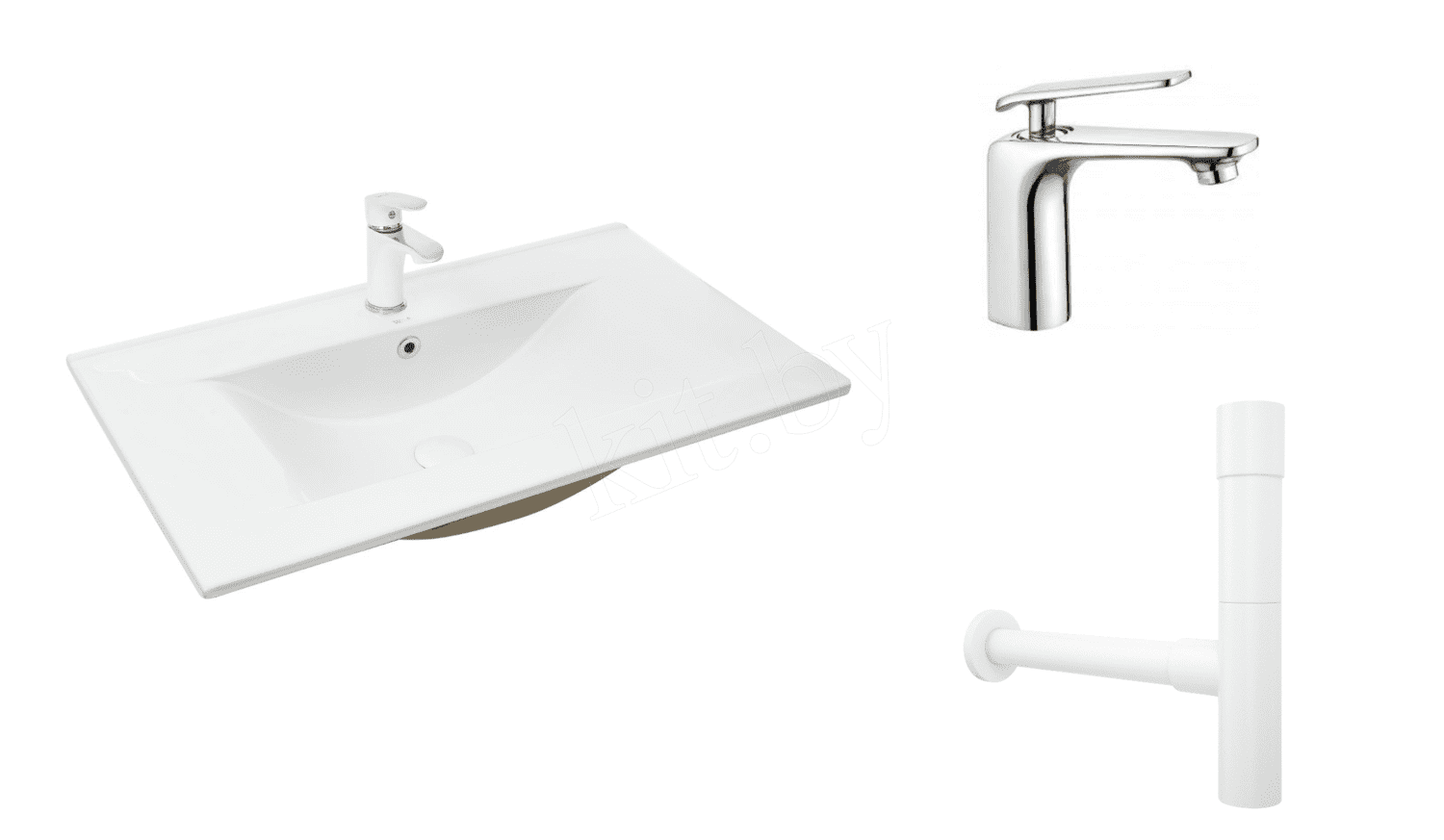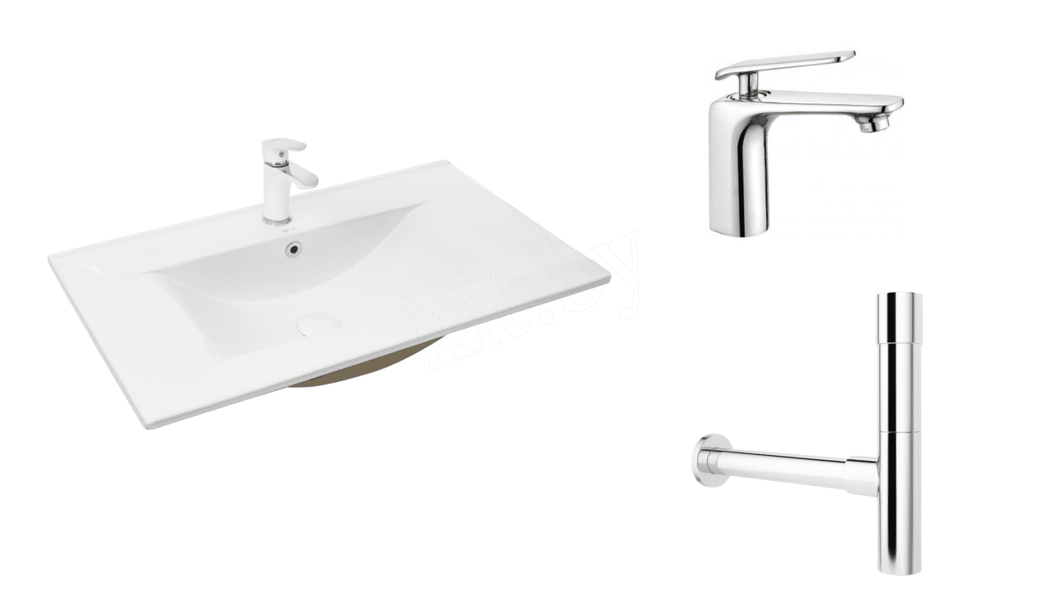 Комплект 3 в 1: раковина Weltwasser WW SK Deilbach 7505, смеситель Ledeme, сифон Wellsee D