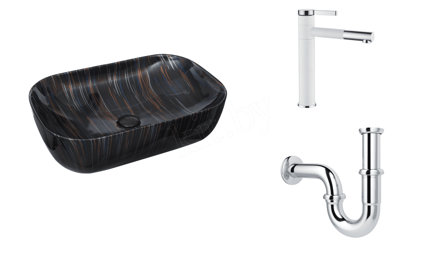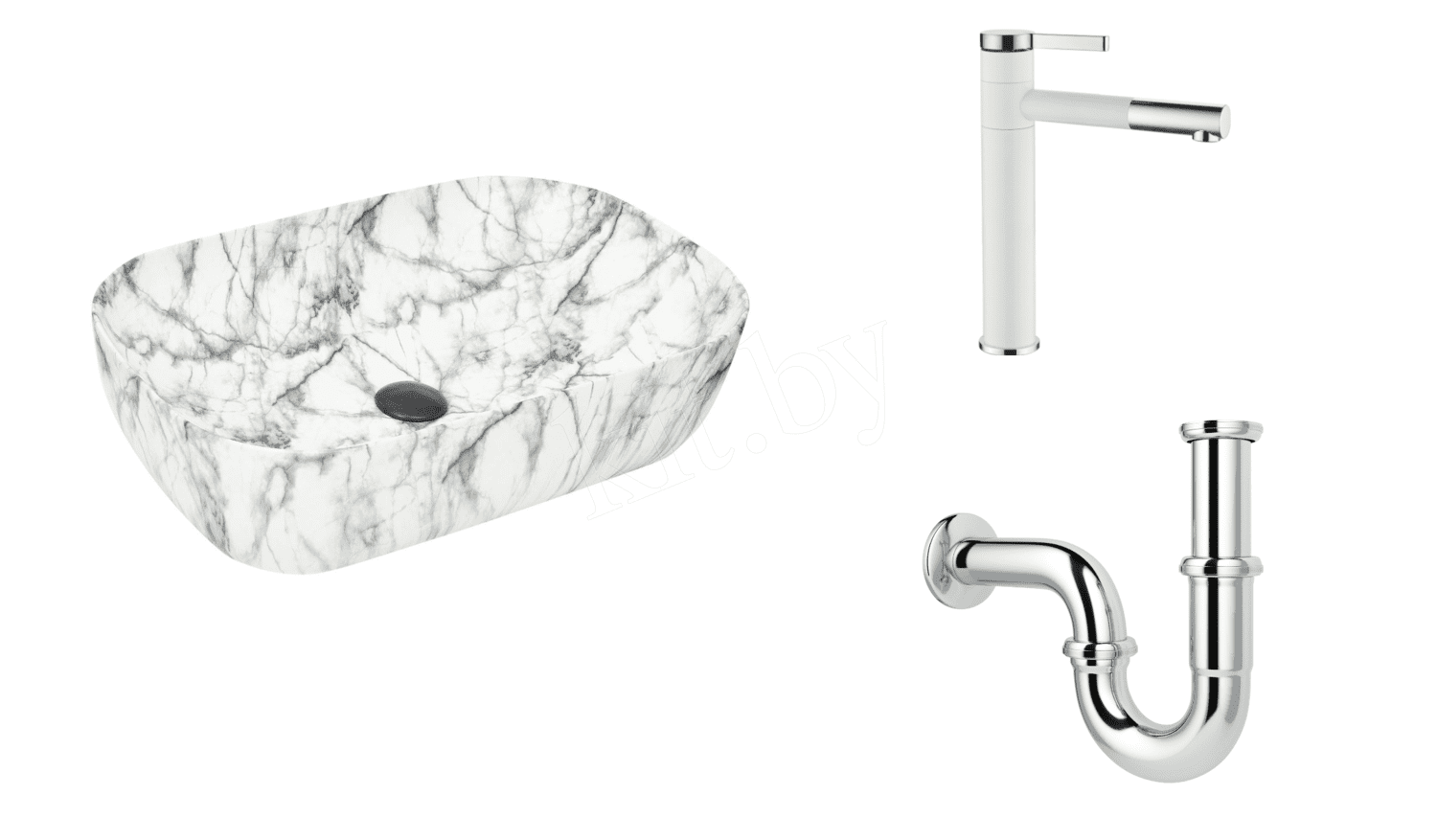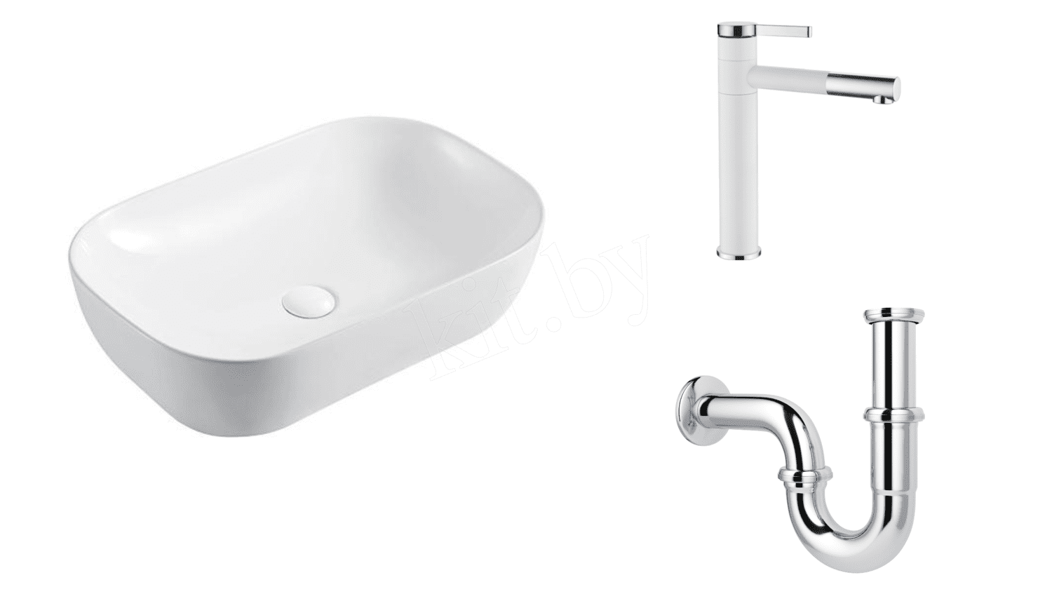Комплект 3 в 1: раковина Weltwasser Elbach 2143/4, смеситель Ledeme L1152, сифон Wellsee G