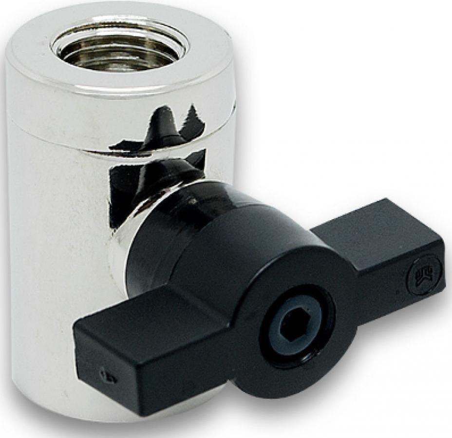 Кран із внутрішнім кульовим механізмом, має два отвори з внутрішньою різзю G 1/4. Оснащений ручкою клапана, яка може перекривати потік рідини всередині контуру. Відповідає сертифікації RoHS.