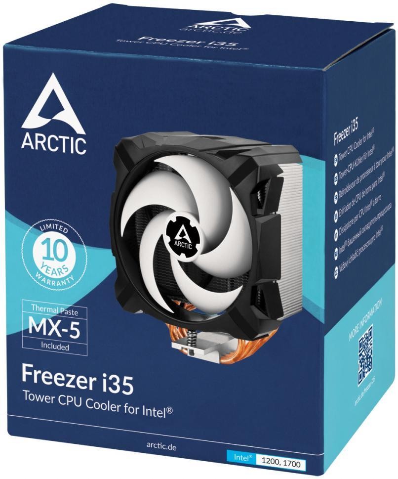 У комплект постачання Freezer i35 входить шприц 0.8 г нової термопасти MX-5. Термопаста Ultimate Performance від Arctic забезпечує особливо тонкий шар завдяки низькій в'язкості й розміру частинок та неабияк знижує накопичення тепла між теплорозподільником процесора та кулером. Водночас вона абсолютно безпечна у використанні навіть для новачків.